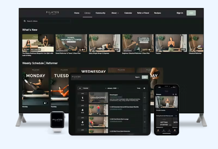 Les séances de fitness ont été organisées dans une plateforme de streaming structurée en programmes, parcours et bibliothèques de contenus. L’accès se fait par abonnement, ce qui transforme une consommation ponctuelle en relation continue et en revenus récurrents.